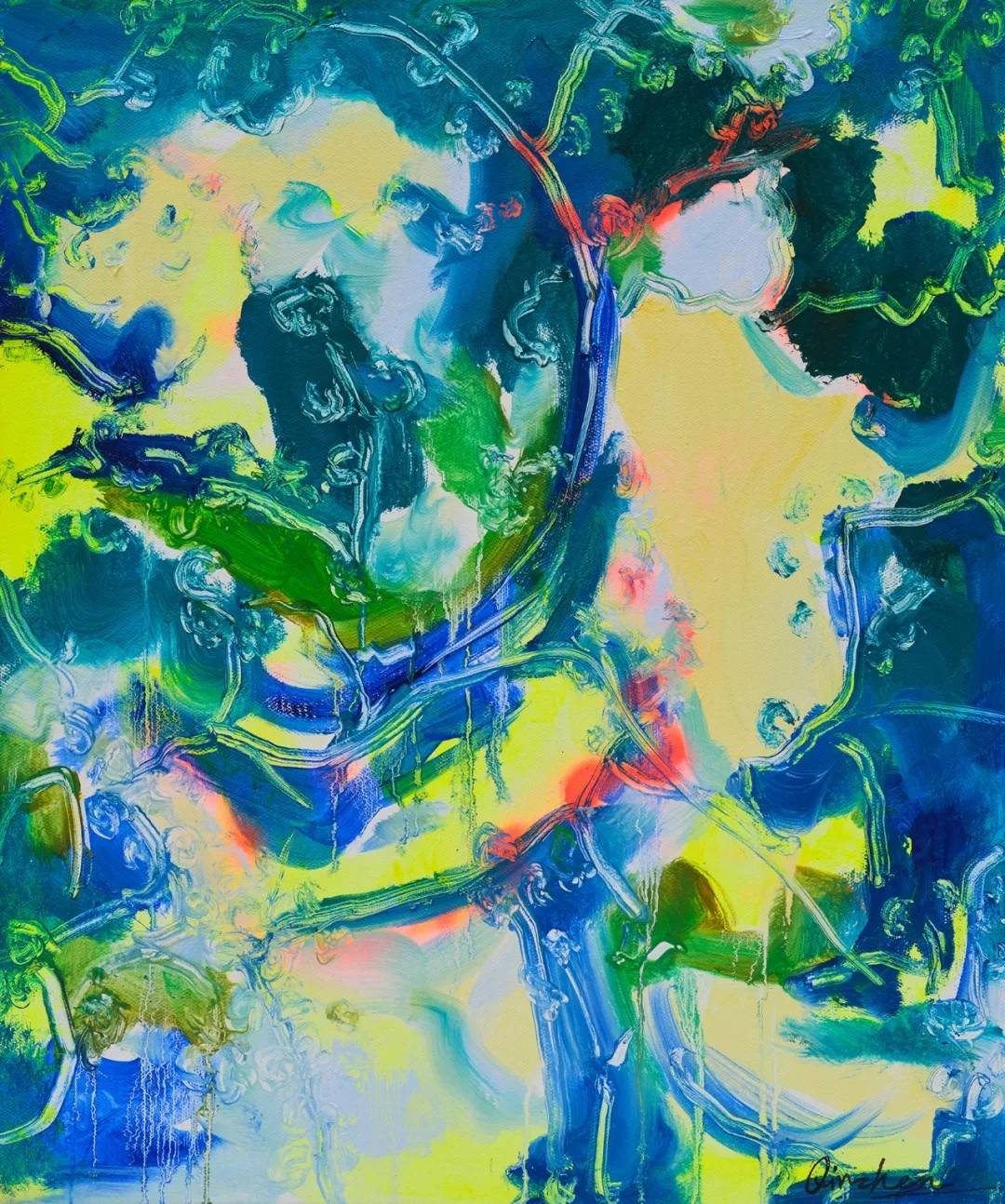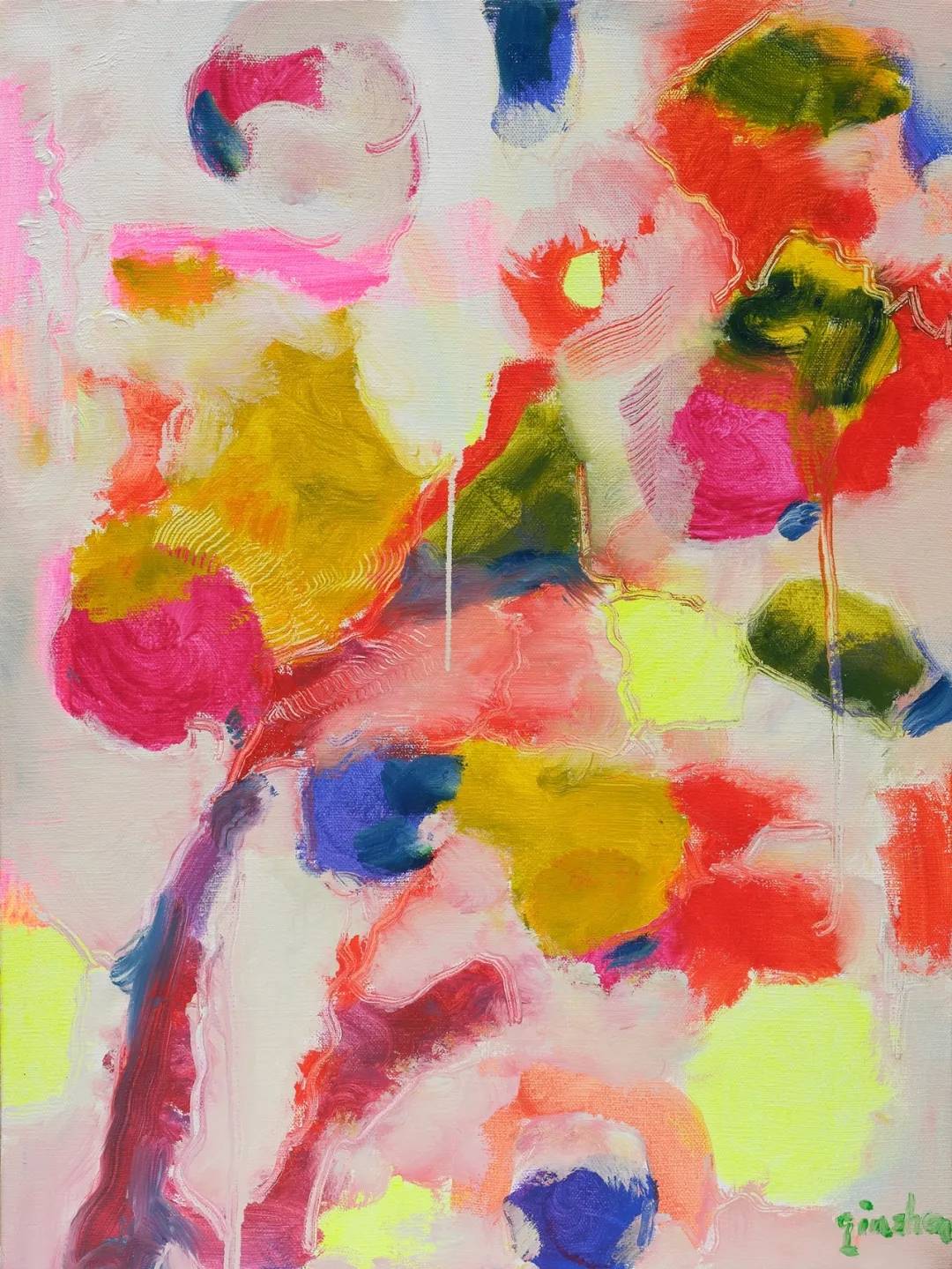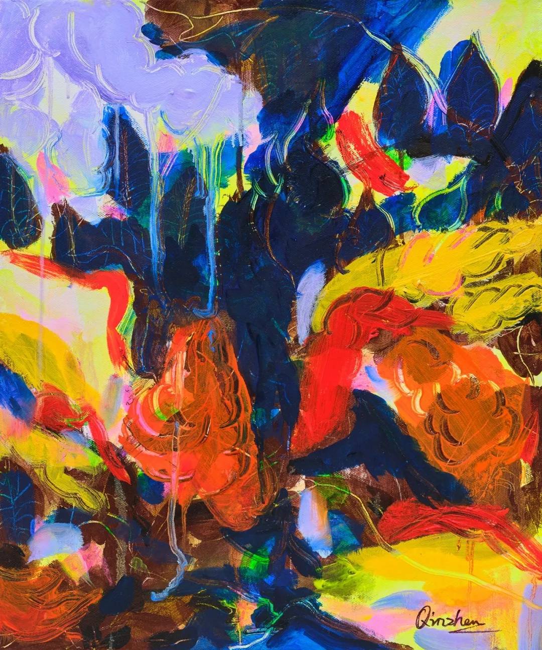 也就是在2012年,秦蓁对世界、人生的看法与以前有了很大的不同。再加上由于研究服装布料以及色彩的原因,她的思考重点转向了从内心出发的风景,也就是心境的表达,“记忆”系列便是她创作转身的显现。在这系列之前,她的绘画作品尚能明显看到物体形象,而在这系列里,她找到了自己的图像范式:鲜活且有脾气的色彩构成,摆脱具象束缚的意象,灵动的线。