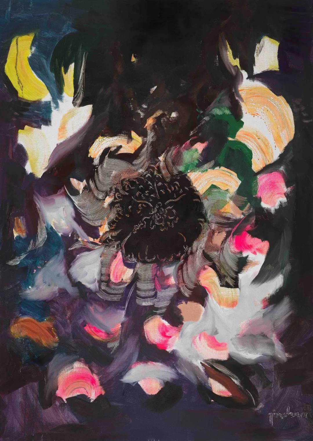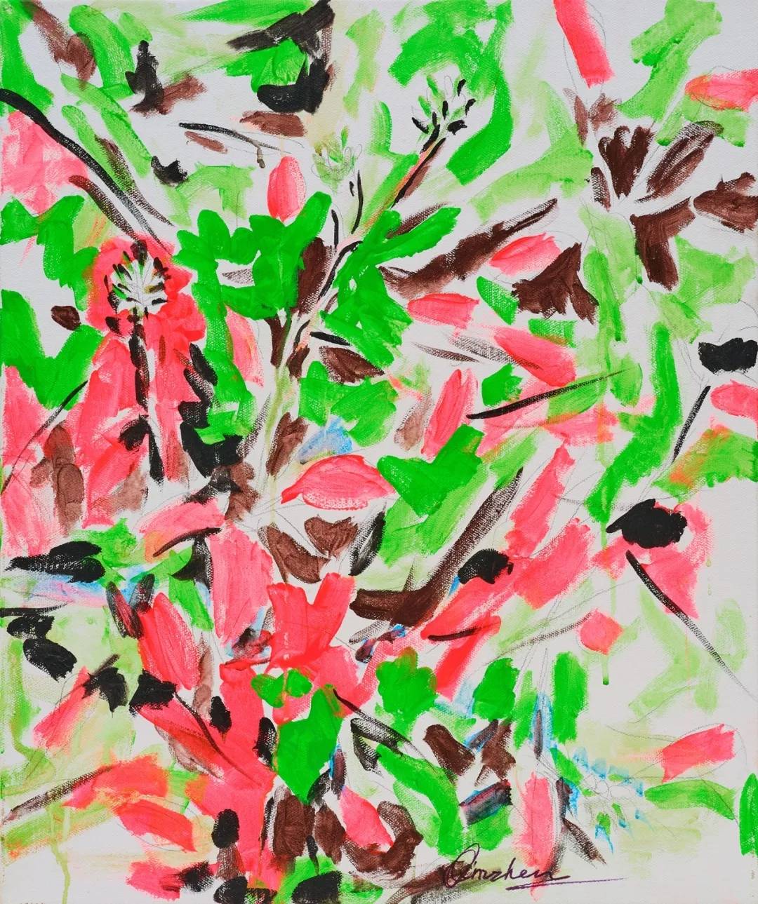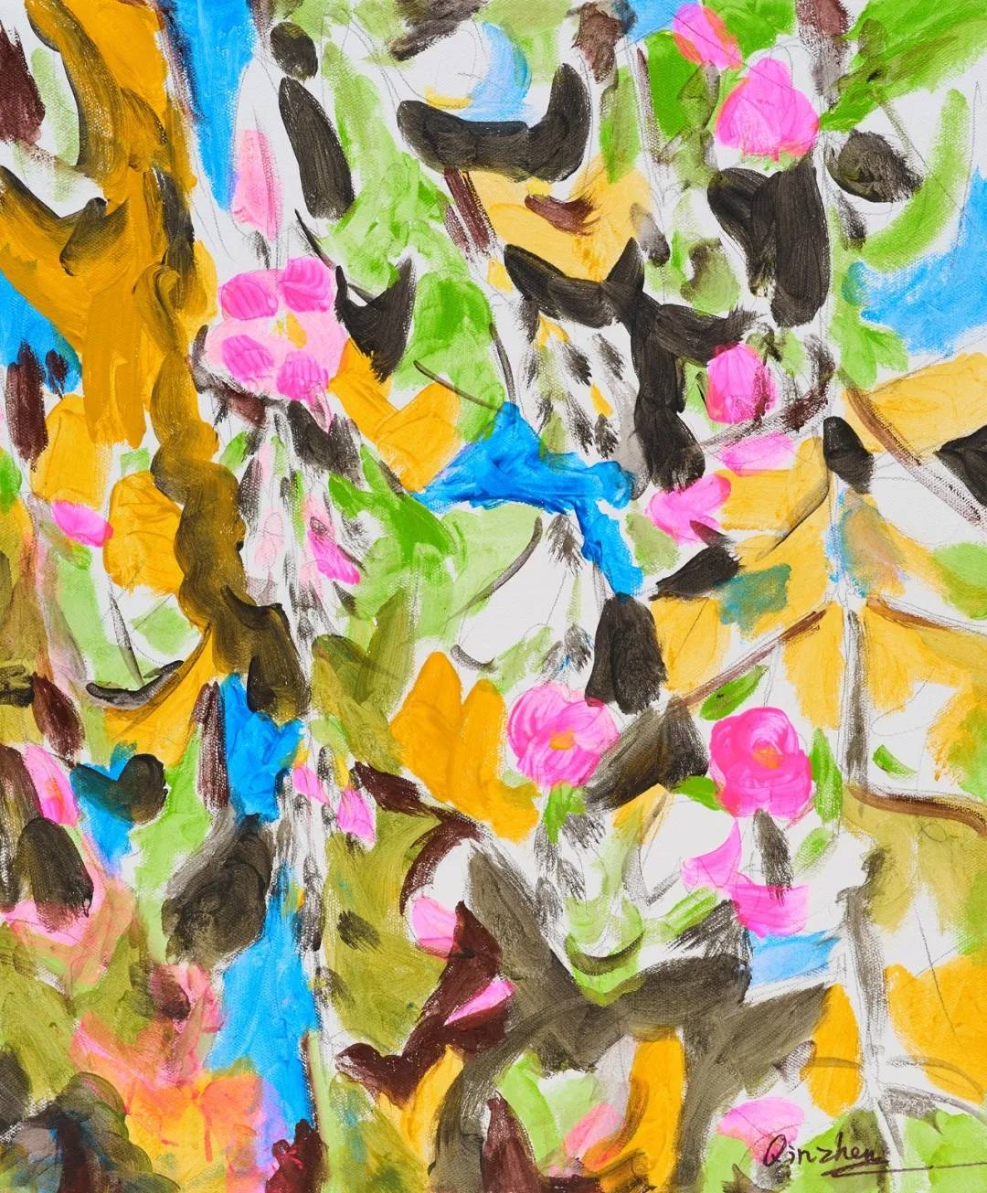 也就是在2012年,秦蓁对世界、人生的看法与以前有了很大的不同。再加上由于研究服装布料以及色彩的原因,她的思考重点转向了从内心出发的风景,也就是心境的表达,“记忆”系列便是她创作转身的显现。在这系列之前,她的绘画作品尚能明显看到物体形象,而在这系列里,她找到了自己的图像范式:鲜活且有脾气的色彩构成,摆脱具象束缚的意象,灵动的线。