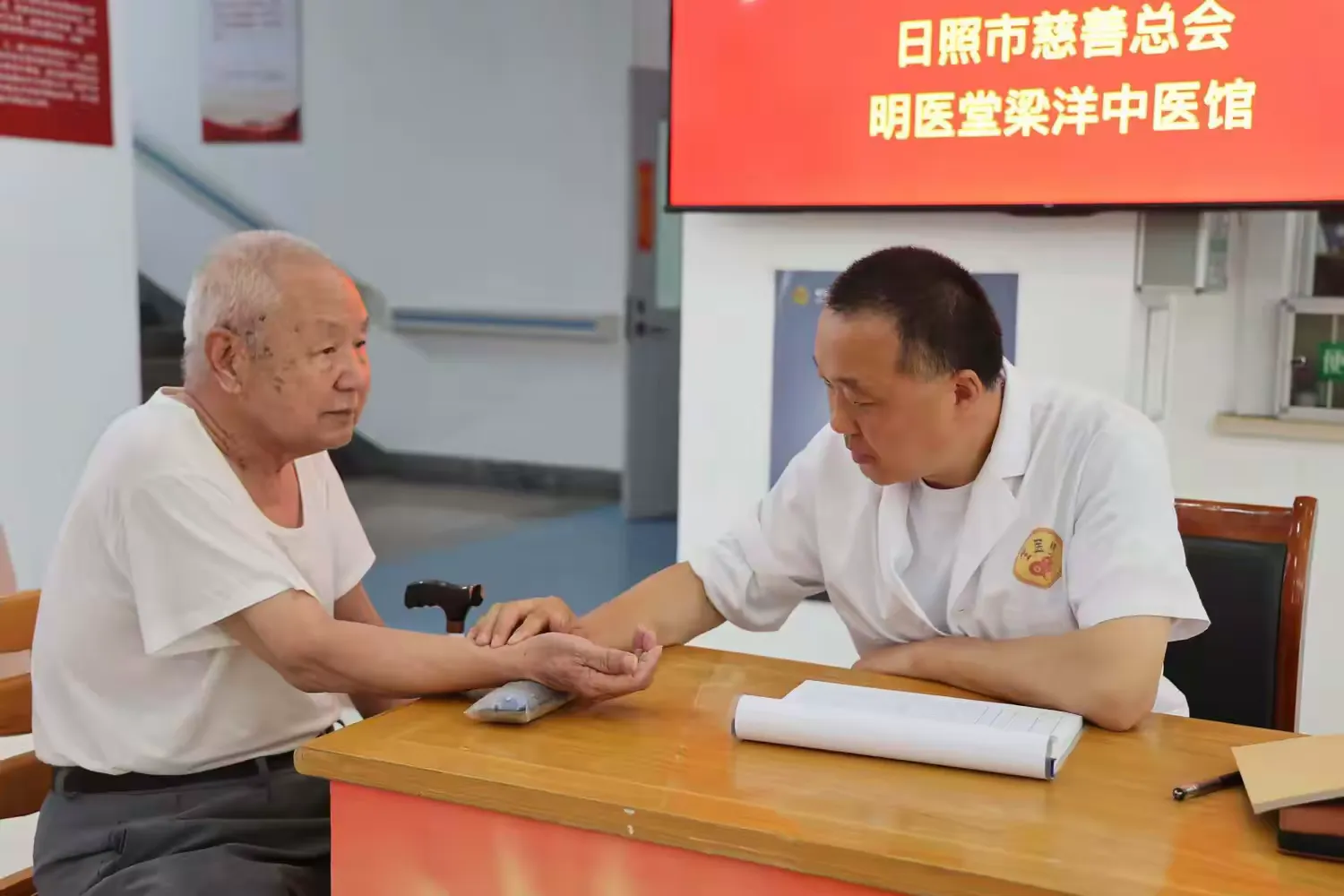 021年7月1日,应战友之邀,梁洋来到日照明医堂坐诊,即便两鬓斑白,他依旧在“双拥”路上“冲锋陷阵”,专门增设“双拥义诊”服务台,用心服务优抚对象及家属。期间,他接诊了军属许先生——这位因糖尿病并发肝腹水、肾衰竭的患者,三年间辗转全国各大医院,花费二十余万元却收效甚微,正在部队服役的儿子小许忧心不已,甚至打算放弃续签三期士官,回乡照料父亲。梁洋得知后,既心疼又动容,一边为许先生减免部分药费,迅速制定个性化调治方案,一边耐心开导小许,立下“两个月内缓解病情”的军令状。小许含泪致电承诺:“老班长梁叔叔,我一定续签士官,只要部队需要我,我就一直在部队干下去,我爸的病就交给您了……”这件事让梁洋更加深刻地明白,做好“稳后安前”工作,才能让战友们安心扎根军营,守护家国安宁。